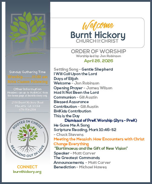 - Watch on YouTube at youtube.com/@burnthickorychurchofchrist