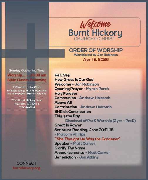 - Click here to view the Order of Worship (OOW) for BH Marietta.